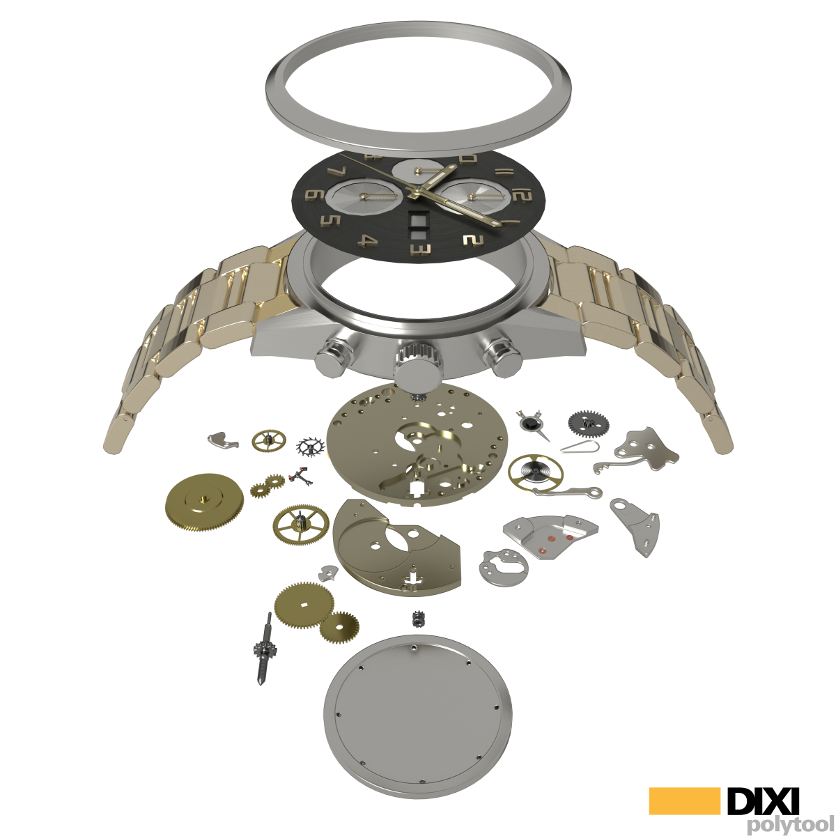 Ce projet a consisté à modéliser et représenter en 3D une montre en vue éclatée, afin d’illustrer de manière concrète les possibilités offertes par les outils de coupe.